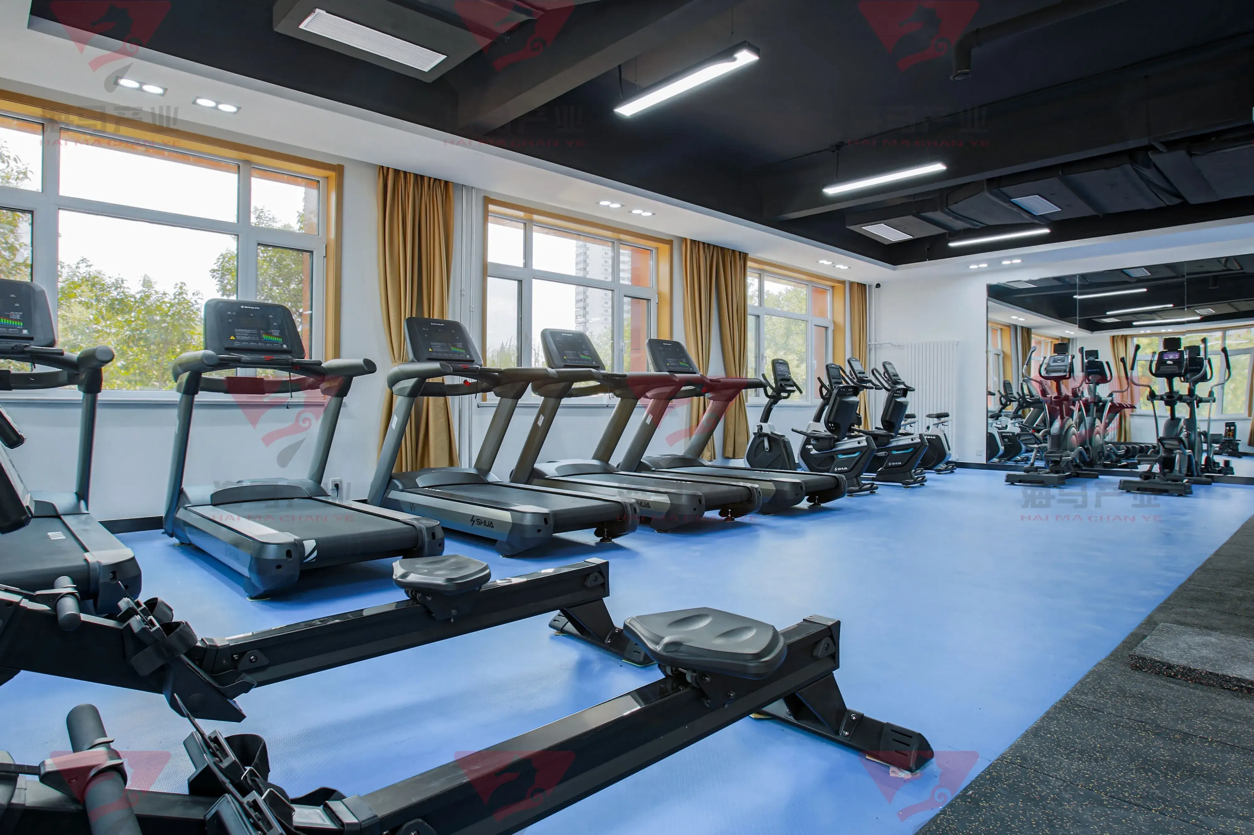 二层为动感单车、跑步机、私教区域以及其他力量健身区;合计面积约为300平方;主要为有氧运动以及力量训练。